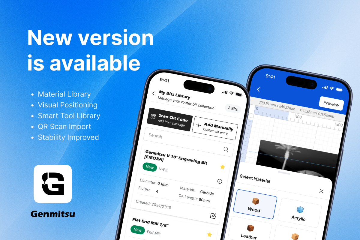 4. Scan-to-Add Milling Bits: Scan Genmitsu tool QR codes to automatically import parameters (manual entry also supported).